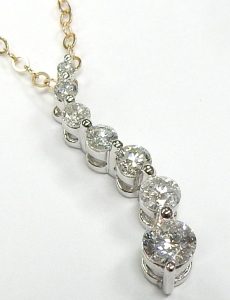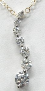 Your journey continues with this classic. The style has been one of our most popular in both new and estate designs for close to 20 years. Whenever one comes in it doesn’t stay around too long. There are some jewellery designs that just look right, and the journey pendant is one of those items. They come in all sizes and qualities, it is hard to mess up this style.