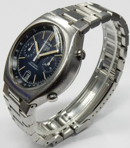 This was a very expensive watch, when it was launched in 1975 it retailed at $425.00 USD. This figure was close to twice that of what a regular hand wind Professional Moonwatch sold for. It is rumored that Omega only produced just 2000 of these but that figure isn’t officially supported by Omega. Not only is it significant for being a rare anniversary model; it’s the world’s first automatic chronograph that is also a certified chronometer. While we’re at it, it’s worth mentioning this complicated watch is equipped with a useful calendar display along with a 24 dial located within the constant seconds display at 9:00.
