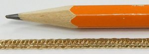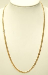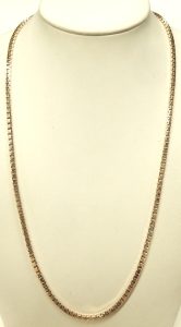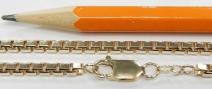 We couldn’t possibly post every gold chain that comes through our estate department but here is a good example of what you can expect to find. We have light chains that cost less than $100.00 all the way up to super heavy weight examples costing thousands of dollars. This solid construction, 10 karat yellow gold example measures 20 inches long and 2.1mm wide. It weighs 6.4 grams and is secured by a large lobster clasp. As with all our estate chains, this one is in perfect condition. No stretch or measurable wear and no signs of previous repair.