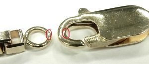 If you’re looking at other vintage/estate/used chains or bracelets, look to the connecting rings and clasp for signs of wear. Over the years, constant movement with pressure will slowly erode the links and joints that rub together. The easiest section to inspect is at the clasp. This area receives the most wear because it’s where the most weight is pulling on the joints. As you can easily see the wear points on the clasp and receiving ring show zero wear.