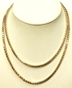If the box link is too “boxy” but you appreciate the strength of the tightly interlocking links, perhaps a rounded box may be worth consideration. If high quality is also something that you’re looking for, this 18.6 gram, 18 karat yellow gold Italian made rounded box link is definitely for you.