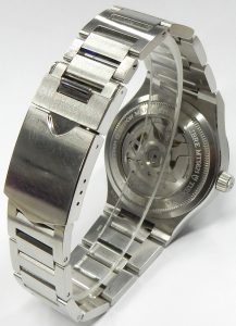 For diving purposes the Rolex 114060 is equipped with a trip lock crown that’s water resistant even when unscrewed plus a threaded solid steel case back.