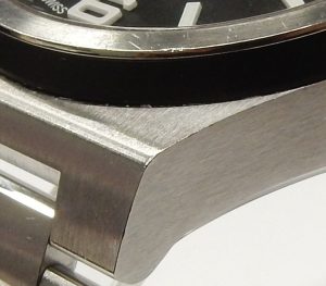 It shows some scuffs and scratches on the polished case and brushed/polished bracelet but nothing significant. We’ve decided to leave it in its original condition.