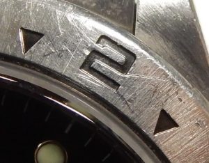 It is showing no evidence of use of any kind and has never been polished or refinished in any way. The fiendishly difficult to refinish radial textured bezel is absolutely perfect.
