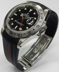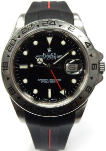 Rolex is a company steeped in tradition and history. They are very slow to change marketing practices and style directions. They rarely introduce new models into the lineup, preferring to slowly incorporate style tweaks and technical improvements to existing models. The original Rolex Explorer II was introduced in 1971 as an adventurer’s watch that was built a little more rugged than a standard Oyster, Oysterdate, or Datejust. It featured an innovative orange second hour hand with an outer bezel that displayed the time in a 24 format.