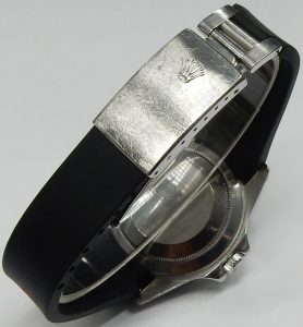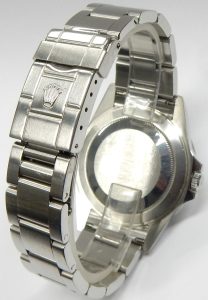 These most basic Submariners come by much less often than the chronometer and calendar equipped models. It comes with all the usual Submariner features of screw down crown/case back, automatic winding movement, one way bezel timer, locking buckle with diver extension, luminous hands/markers, and a water resistance rating of 300 meters.