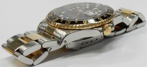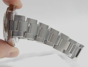 We can easily restore it to like new appearance in only a day or two if you wish. The sporty Oyster bracelet with adjustable length easylink buckle is missing a couple links. If you have anything more than an average sized wrist you’ll likely need an extra link. Extra links are easily sourced and available.