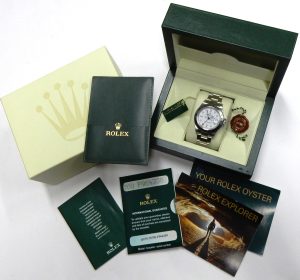 Our latest estate Rolex also features the popular and sporty Oyster link bracelet. Concealed under the buckle is the Rolex “EasyLink”. This clever link allows a 5mm extension for those days when a touch more room makes the perfect fit.