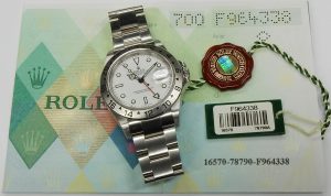 All this can be accomplished without affecting the seconds minutes or date. The complicated mechanical automatic movement calibre 3285 has an autonomy of 70 hours and has been independently certified to chronometer accuracy standards. Our latest Explorer II has the preferred and slightly less common white dial with luminous hands and hour markers that are most effective in low light/no light situations.