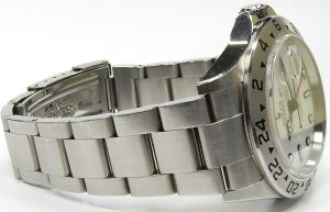 The diabolically difficult to duplicate radial finished 24 hour bezel is in very good condition showing a few dings and scuffs running the opposite direction of the finish. The entire watch showcases uniform light wear and is very honest in presentation. The Oyster bracelet is a link or two short but extras are easily obtained, it shows hardly any stretch or sag.