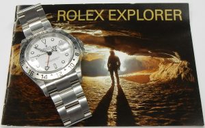 A classic Rolex that debuted in the 1950s. The Rolex Explorer got its name after Sir Edmund Hillary wore one on his quest to be the first person to successfully climb to the top of Mount Everest. Ever since it has been a top choice for adventurous people who want the ultimate in absolute functional timekeeping. Crafted in Switzerland by Rolex using very expensive 904L stainless steel containing molybdenum. This exotic element makes the Explorer extra resistant to corrosive saltwater and other types of chemical exposure. Large luminous markers make low-light/no-light time interpretation a snap. The Arabic 3,6 and 9 add to the clear clean functional nature of this watch, especially in the dark.