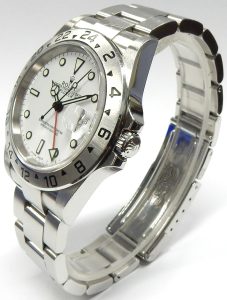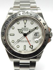 Rolex Explorer IIs are only available in stainless steel with a white or black dial. That’s it, no options, no diamonds, no gold or two tone cases. Even the dressier Jubilee bracelet option is not available. If you want a classic sport Rolex this may be the model for you. Measuring 40mm diameter makes for a comfortable size that can be worn by anyone. Not too big, not too small and not too thick. The 16570 has become more collectible since it was replaced with the new larger 42mm version in 2011. The “Polar” white dial is a little less common than the back and definitely more sought after.