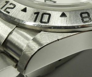 The sporty Oyster bracelet and buckle show very minor surface scuffs and scratches. The bezel is smooth bezel is practically perfect. This watch has never been polished or refinished in any way.