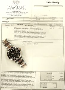 The only concession with luminova is it must be exposed to a bright light source if expected to be useful for up to 10 hours at a time. This watch was purchased on Christmas Eve 2003 and comes with the original bill of sale. The bill of sale actually shows a significant discount of 22% off! Imagine that, getting a discount on a Submariner, that is something you’d never see these days.
