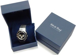 Our latest estate watch comes complete with the original beautiful Omega packaging in like new condition, full documentation, endorsed warranty cards, and even the original invoice from the United Kindom. Including our complimentary one-year Bill Le Boeuf Jewellers warranty, this watch is estate priced at $4,000.00 CAD. Stock #510-00123.