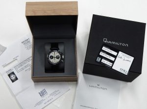 The watch was purchased in 2017 at a Canadian authorized agent (this is not a grey market watch). A more complete example is going to be difficult to find. Inner/outer boxes, documents, booklets, digital/dated warranty card come included along with a cardboard whiz-wheel.