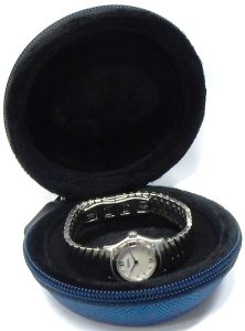 This never-worn timepiece is a Lassale model number 1230-5479 from the mid-1980s. It was purchased at Peoples Jewellers, given as a gift but never used. When it came in on trade we couldn’t believe our eyes. This watch is a snapshot of the latest in fashion from the 1980s. We opened the case, installed a fresh battery, and away it went.