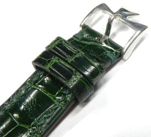 The previous owner commissioned a beautiful custom made emerald green alligator strap with matching green stitching. The strap is in like new condition and shows no wear or blemishes of any kind. The original signed 18 karat white gold Vacheron Constantin buckle is a nice touch.