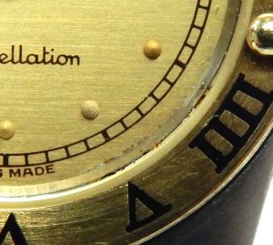 The quartz crystal contained within this 13 jewel movement vibrates at an incredible frequency of 2,359,356 Hertz. Nearly all quartz watches rely in a frequency of just 32,768 Hertz. That automatic Rolex on your wrist runs at just 8 Hz. (no wonder it doesn’t keep great time). Back in the 1970s quartz technology was very expensive and no one knew exactly where this curious new space age technology was going. Some manufacturers virtually abandoned traditional mechanical watches in favor of this electronic science. Omega invested considerable money into quartz technology that today many luxury watch brands hardly use. Our example has two factory applied model numbers inside the case back of 198.0082 and 398.0832.