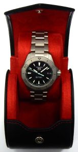 This watch was purchased directly from TagHeuer.com in February 2024 and comes complete with the huge box and travel pouch that are only available if ordered directly from the manufacturer.