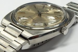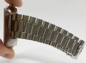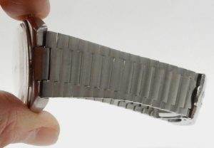 It hasn’t been polished or refinished in any way. The solid link stainless steel bracelet and buckle are in link new condition, showing little to no sag and zero stretch.
