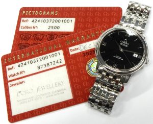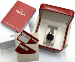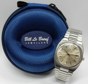 Our latest estate watch comes complete with the original beautiful Omega packaging in like new condition, full documentation, endorsed warranty cards, and even the original invoice from the United Kindom. Including our complimentary one-year Bill Le Boeuf Jewellers warranty, this watch is estate priced at $4,000.00 CAD. Stock #510-00123.