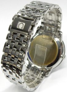We’d be happy to provide a complimentary polish to the entire watch to have it looking like new. Powering the low maintenance quartz movement with a calendar is long life lithium battery that should keep the watch running for around 5 years.