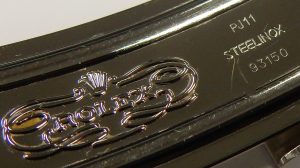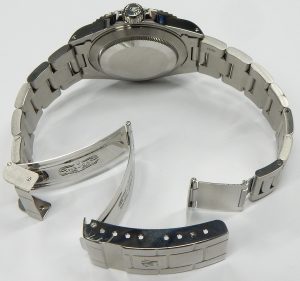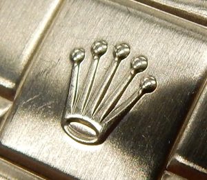The definition of the embossed coronet logo on the back of the buckle is easiest way to check for wear and tear along with evidence of refinishing. The logo of this watch is perfect showing no flattening and excellent detail.