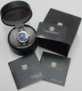 Sometimes the commonplace can become rare over time. Tag-Heuer is one of the world’s most popular brands of sports watches and we see a steady supply of their capable products come through our estate department. The 2000 Classic was a series of diver models offered in a variety of sizes, powered by either battery operated quartz or automatic winding movements.