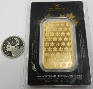 1 ounce .9999 fine gold bar Royal Canadian Mint. Spot plus 2%. 912-00879