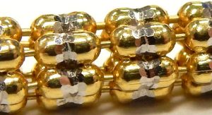The round cross section links resemble circular bathtub ball chain but with with some additional white rhodium and bright cutting for additional sparkle.