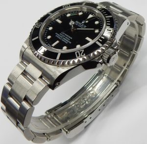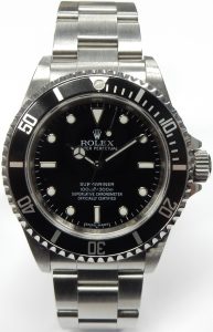 This is the last Submariner that showcases the look and feel of those early models from the 1950s and 60s. If you like the feel of a lighter wearing Submariner, this one weighs a comfortable 127 grams thanks to hollow centre links, stamped buckle and end link components, This is one of the best examples of a 14060M Submariner currently on the market, we don’t see them this good very often. Including our 1 year complimentary warranty, this desirable Rolex Submariner is estate priced at $14,000.00 CAD. Stock #505-00643.