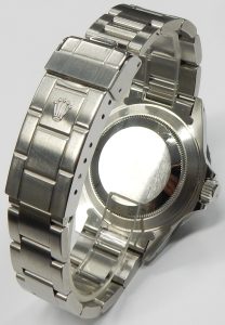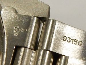 The definition of the embossed coronet logo on the back of the buckle is easiest way to check for wear and tear along with evidence of refinishing. The logo of this watch is perfect showing no flattening and excellent detail.