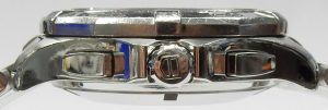 This watch’s single push crown design and digital display allow the wearer to view the alarm, second time zone, date, countdown timer, and chronograph functions without having to switch from viewing the analog time. The Minute Repetition function, with a series of chimes, allows the wearer to know the time with a push of a button and without having to even look at the watch, the backlit function of the digital display is not functioning.