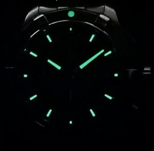 The original Valjoux version has been powering some of the world’s most important brands, including Omega and Breitling for close to 5 decades. Reliable and accurate movement aside, this watch has all the other features to keep the watch enthusiast interested, including a water resistance rating of 1,000 feet! A beautiful black horizontally striped dial has enough texture changes to keep even the most discriminating eye entertained. The recessed concentric ring registers with beveled frames give this dial even more depth. A one-way timer bezel radial finish reenforces the classy all steel look.