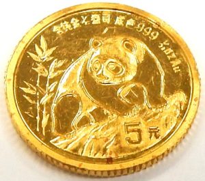 Most “gold coins” are alloyed with other metals making them more durable and long lasting once they get into general circulation. That’s makes sense in principle but when was the last time you saw a gold coin in circulation with regular currency? Truth is, since the advent of paper money, gold coins never go into circulation for face value. With the price of gold around $5,800.00 CAD per ounce, the face value of gold coins can be 100 times less than than their actual gold content. Any gold coin alloyed with other metals making them less than 99.9% pure is subject to sales tax when purchased in Canada. 99.9% pure gold coins like this Chinese Panda are seldom encountered by us. They are usually traded among collectors and purchased as investments. Only a handful of countries produce coins of such purity and these coins never go into general circulation for their face value. Bullion coins like these can legally be purchased in Canada tax free, no sales tax is added to the price. The Canada revenue agency looks upon the sale of fine gold and other precious metals as a financial transaction therefor not subject to sales tax. This coin is offered for only the intrinsic value of the gold plus 5%. It has been handled and displays scuffs and scratches but still weighs 1.555 grams according to our scale. You can bang it more up and it will always be worth the weight in gold no matter the condition, as long as it weighs 1/20th of an ounce (1.555 grams). These don’t come in very often and never in significant quantities. At current gold pricing of approximately $5,800.00 per ounce Canadian this coin is selling for $305.00. It is very cute, with a depiction of the lovable panda on one side and a Pagoda on the other. For credit card purchases please add an additional 2% to cover the service fee. Estate priced at gold value only plus 5%. Stock #912-00824.