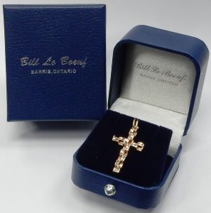 It is in perfect condition showing no wear in the oval bail. Crafted from 1.75 grams of 10 karat yellow gold and estate priced at $225.00 CAD. Stock #436-00351.