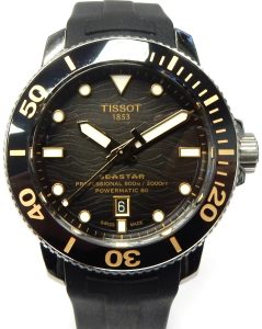 Tissot is to Omega, as Tudor is to Rolex. Tissot may be lower in price, but don’t let that fool you, they are immensely capable performers lacking almost nothing when it comes to high end features. I can’t think of another brand (even Tudor) with a power reserve of 80 hours at this price point. This watch is still available on the Tissot website with a retail price of $1,495.00. For under $1,500.00 you get a watch with a water resistance rating of 600 meters (2000 feet), display case back showcasing the 23 jewel automatic winding calibre C07111, a helium escape valve, protected threaded crown, one-way timer bezel with ceramic insert, domed lab-grown sapphire crystal, gradient brown/black wave texture dial, solid stainless steel 46mm case, a handy 31 day calendar, and some of the largest/luminous hands and markers found on any watch.
