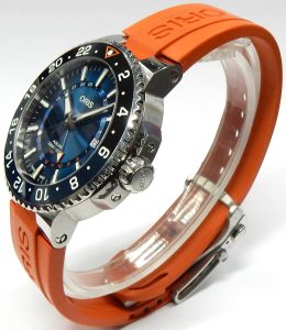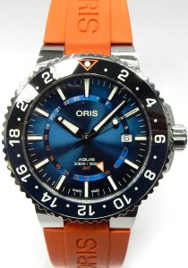 Oris have been working with Coral Restoration Foundation since 2014 rehabilitating threatened reefs. The Aquis line of diver watches has been very successful for Oris, this one comes with a second time zone GMT feature. The additional pointer shaped hour hand displays any second time zone you select in a 24 hour format. For the sharp sighted there is an additional 24 hour scale printed on the dial.