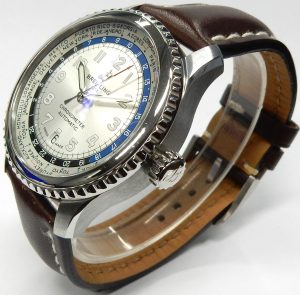 They have a background dating back to the mid 1800s. The company was famous for building some of the world’s most accurate marine chronometers. Before there was electronic timing equipment these highly accurate wind up timekeepers were an essential tool for celestial navigation on the open sea. Accuracy wasn’t a luxury, it was a life or death necessity. Before the digital world of GPS positioning, knowing where you were relied on precise time, a clear star filled sky, a sextant and a good deal of operator skill. Developing incredibly accurate ship clocks was a daunting task given the environment they operated in. Accurate time was an essential factor for knowing where you were in the vast open oceans. In keeping with their nautical timing history the Ulysse Nardin Marine Chronometer 353-66 offers all the features one would expect from a rugged and durable watch. Super sturdy stainless case offering water resistance to over 600 feet.
