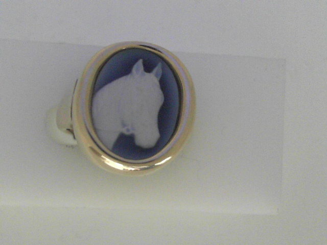 10 Karat Yellow Blue Horse Cameo Ring With Finger Size 6