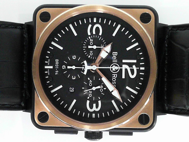 46mm Bell & Ross Chronograph 18kt rose gold and black PVD on black crocodile strap BR01-94-S/R-296 no box or papers