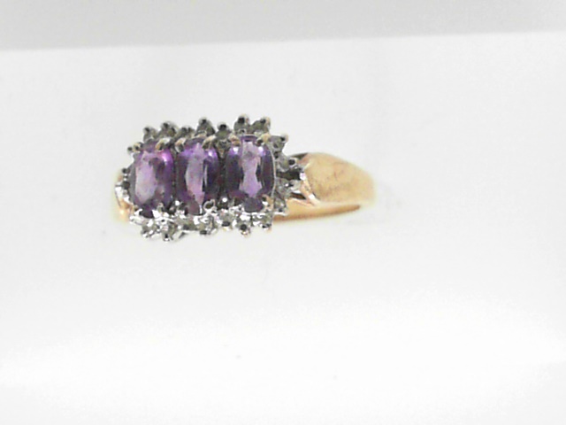 Amethysts Estate Ring 10 Karat Yellow Amethysts Ring With Finger Size 7 Gram Weight 2.3 3 Center Amethysts Shape: Oval With 21 Round Diamonds