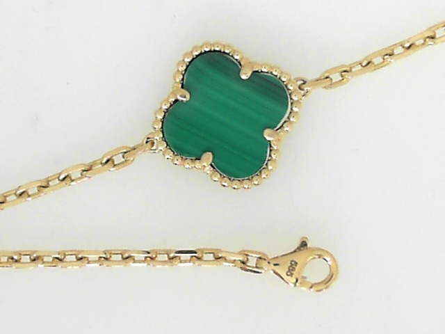 14 Karat Yellow Malachite Bracelet Length: 7in