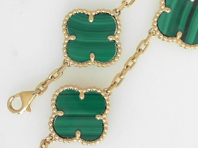 14 Karat Yellow Malachites Bracelet Length: 7in