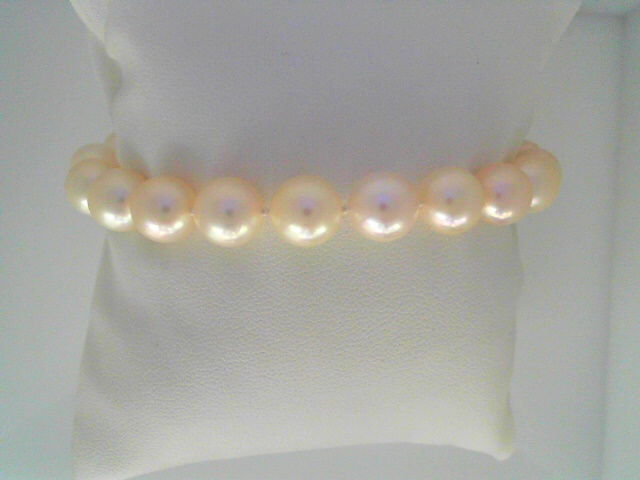 14 Karat Yellow White Pearl Bracelet Length: 7.5in Width: 9mm