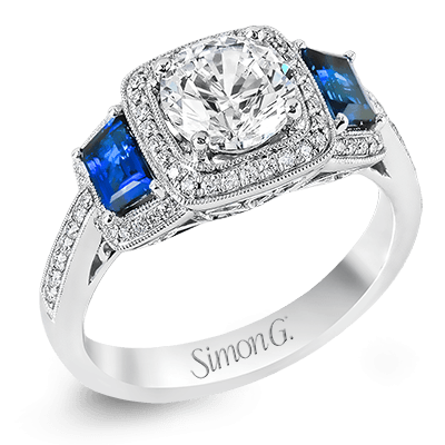 1 Center Cubic Zirconium Shape: Round With 23 Round Diamonds 0.53 ctw and 2 Various Shapes Sapphires