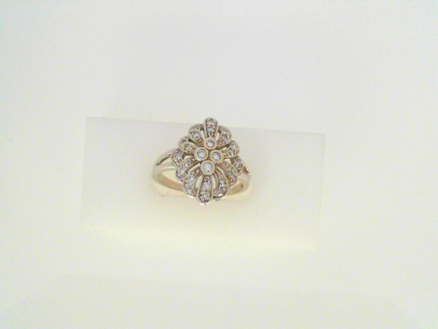 Diamond Dinner Ring – Women’s 18 Karat White Dinner Ring Width 1.7mm Finger Size 7.75 Gram Weight 4.6 Center Diamond Shape: Round 0.33