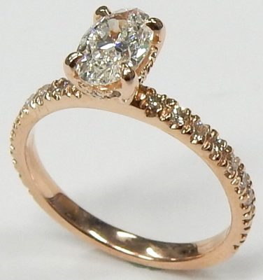 1 Center Diamond 0.70ct Shape: Oval Clarity: I1 Colour: H With 32 Round Diamonds 0.30 ctw 1