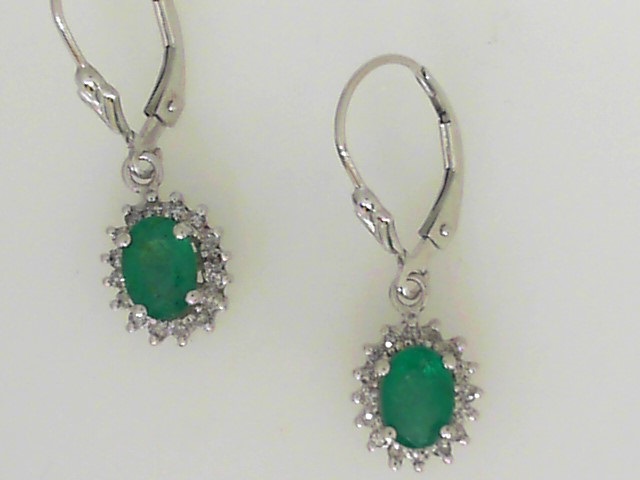 Earrings with Emeralds 14 Karat White Emeralds Earrings Gram Weight 3.3 2 Center Emeralds Shape: Oval With 32 Round Diamonds